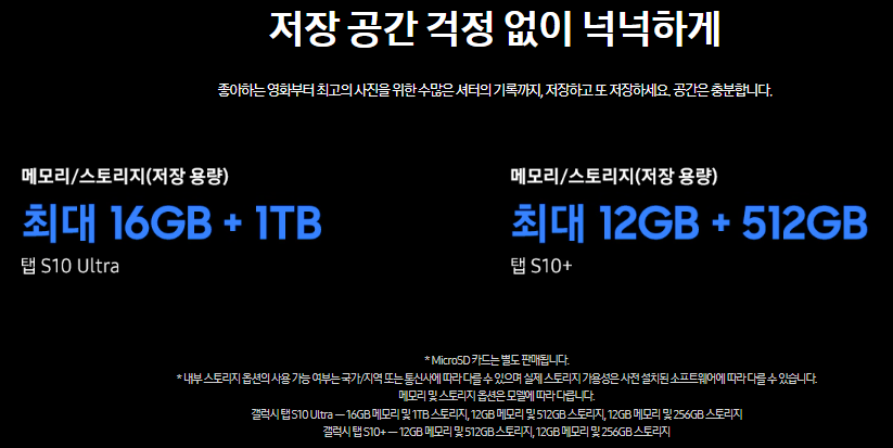 | 갤럭시 탭 S10 5G | 256GB | 5G 지원 | 약 100만 원 이상 |