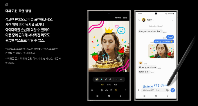 - 갤럭시 S23 울트라 S펜 지원: 내장된 S펜으로 메모, 그림 그리기, 원격 제어 등 다양한 기능을 즐길 수 있습니다.