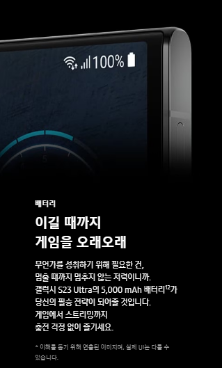 - 갤럭시 S23 울트라 넉넉한 배터리: 4,855mAh 대용량 배터리로 하루 종일 걱정 없이 사용 가능합니다.