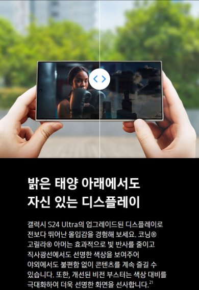 갤럭시 S24 울트라는 6.8인치 QHD+ AMOLED 디스플레이를 탑재하여 선명한 화질과 뛰어난 색 재현력을 제공합니다. 갤럭시 S24 울트라는 베젤이 거의 없는 디자인으로 몰입감을 극대화했으며, 화면 주사율은 120Hz로 부드러운 스크롤링과 게임 플레이를 지원합니다.