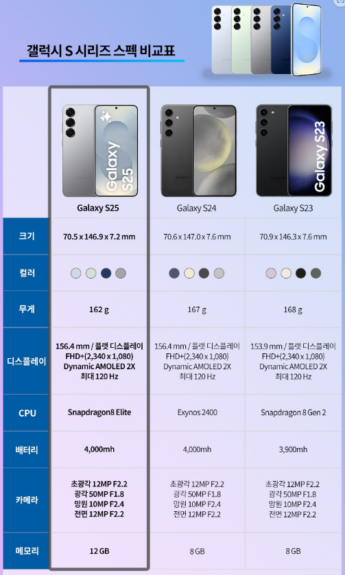 | 항목 | 갤럭시 S25 |