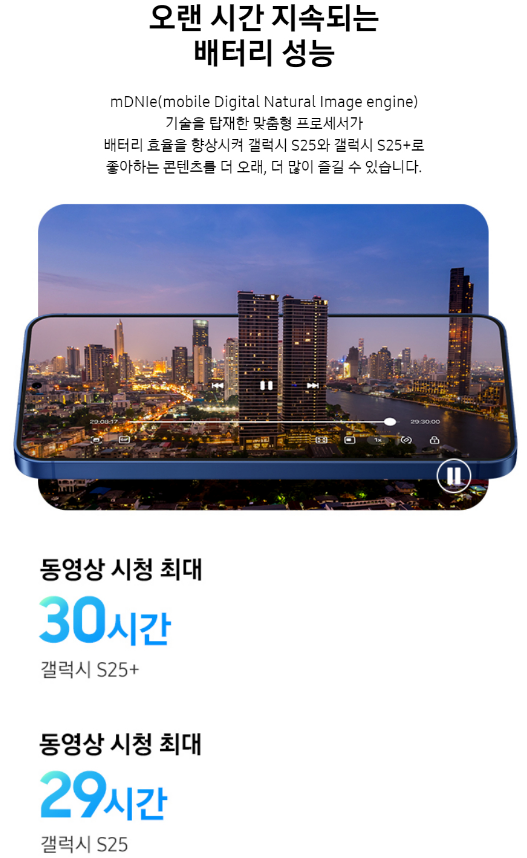 | 갤럭시 S25 | 4,000mAh | 약 10시간 (연속 사용) |