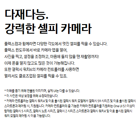 - 카메라 활용: 접은 상태에서의 셀피 촬영이나 플렉스 캠 모드를 통한 창의적인 촬영이 가능합니다.