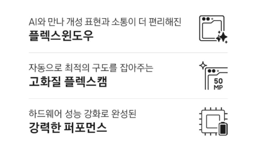- 플렉스 모드 촬영: 폴더블 디스플레이를 활용한 핸즈프리 촬영.