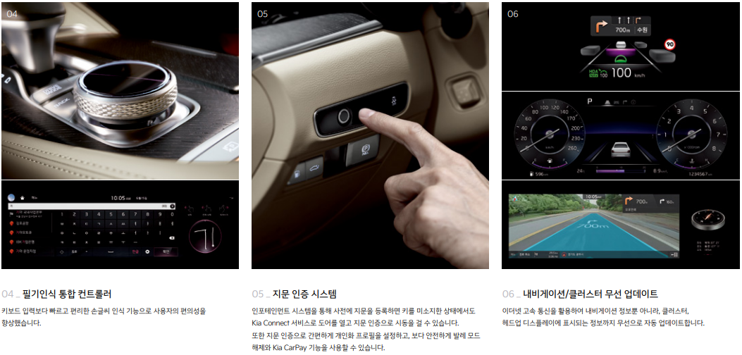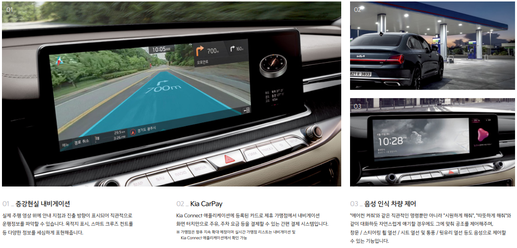 - 헤드업 디스플레이: 주행 정보를 윈드실드에 투사하여 안전한 운전을 돕습니다.