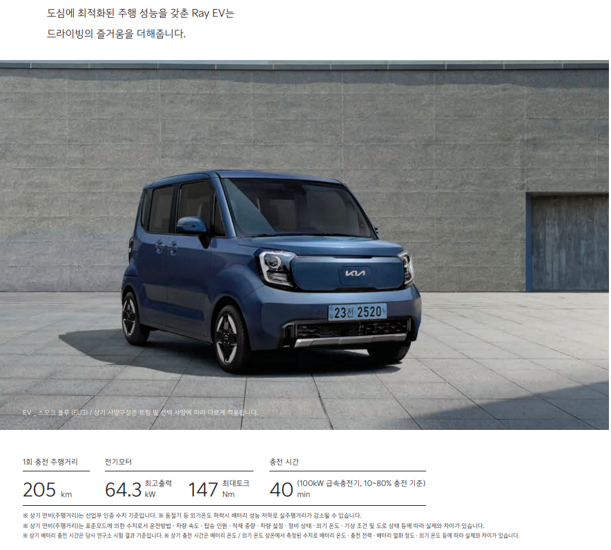 소형 전기차를 고민 중이라면 레이 EV는 최고의 선택이 될 수 있습니다. 지금 바로 가까운 기아 대리점에서 시승해보세요!