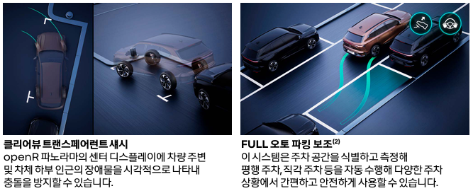 - 360도 어라운드 뷰: 주차 및 좁은 공간에서 유용한 카메라 시스템.