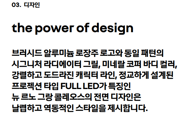 - 르노 그랑 콜레오스 최고 출력: 160마력 (가솔린) / 190마력 (하이브리드 시스템 통합)