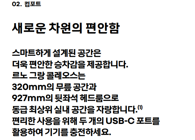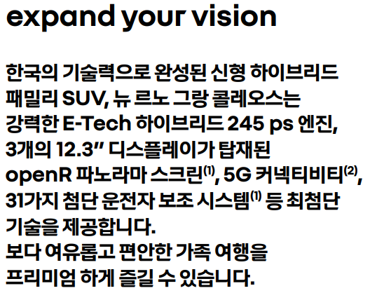 지금 바로 가까운 르노 전시장을 방문해 시승해보는 것은 어떨까요? 르노 그랑 콜레오스가 여러분의 일상에 새로운 활력과 편안함을 더해줄 것입니다. 여러분의 다음 차가 바로 이 그랑 콜레오스가 되길 바랍니다!