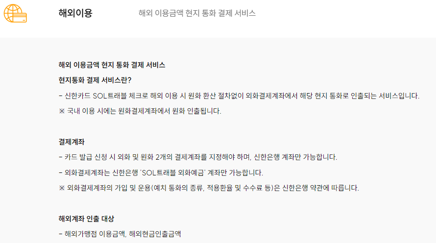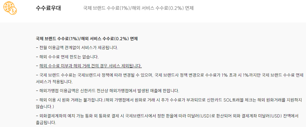 신한카드 SOL트래블 체크의 세부 혜택