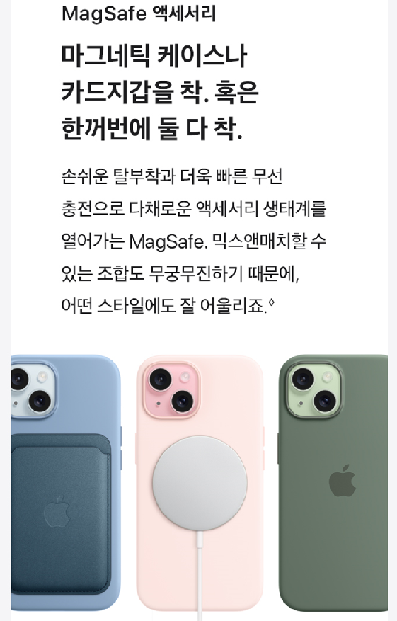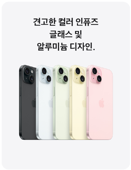 - 아이폰 15 / 15 플러스: 핑크, 옐로우, 그린, 블루, 블랙