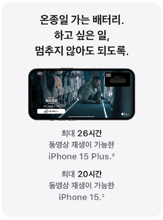 - 아이폰 15 플러스: 최대 26시간 비디오 재생
