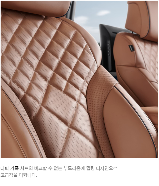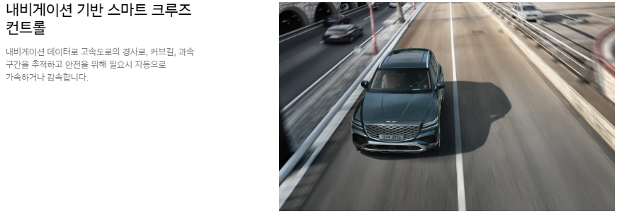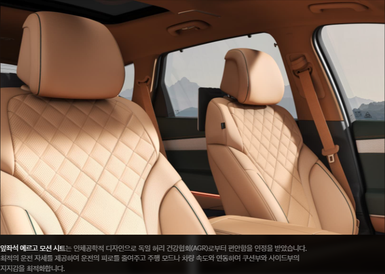 - 프리뷰 전자제어 서스펜션: 도로 상황을 미리 파악해 승차감을 극대화합니다.