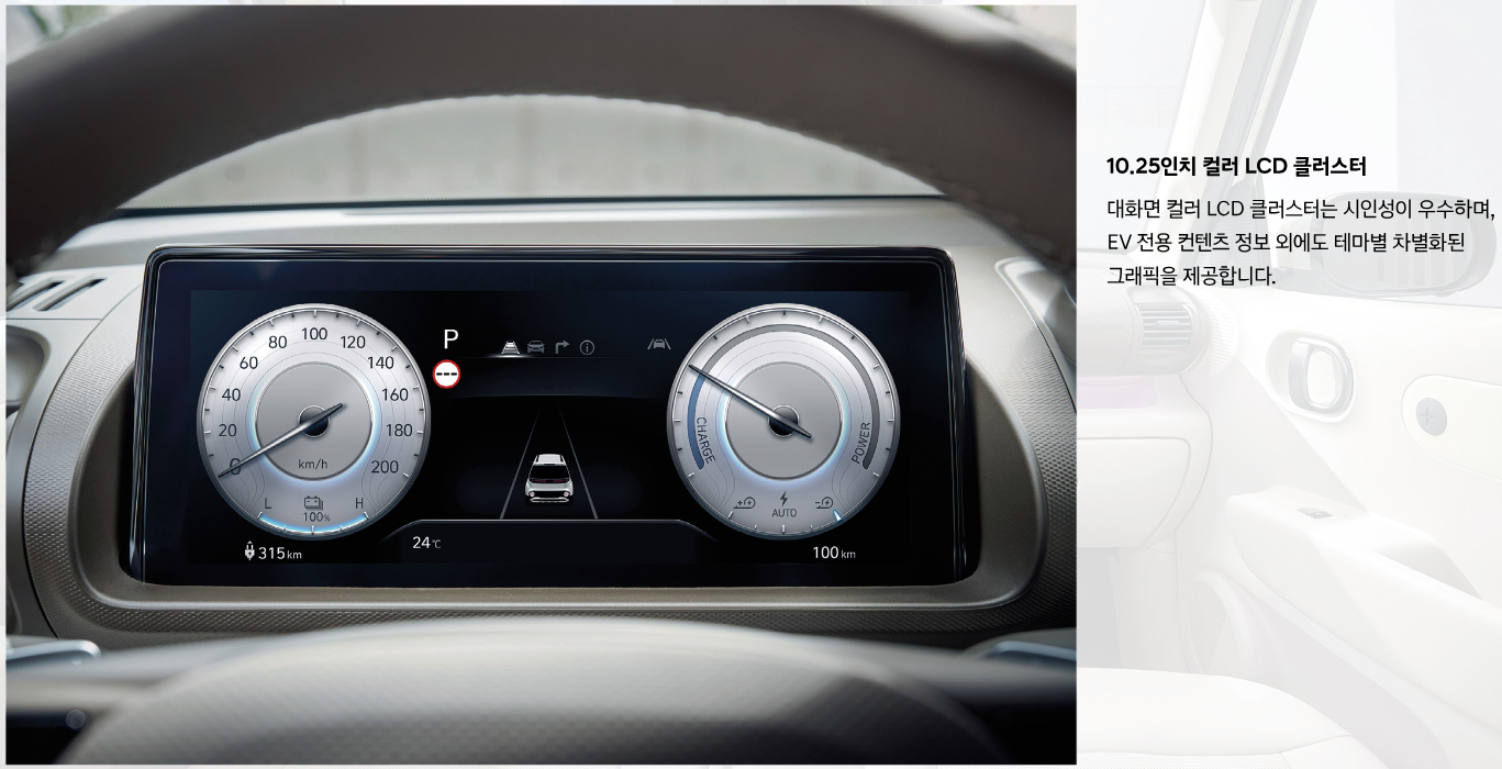 - 10.25인치 내비게이션: 전기차 특화 기능 (충전소 정보 등) 포함