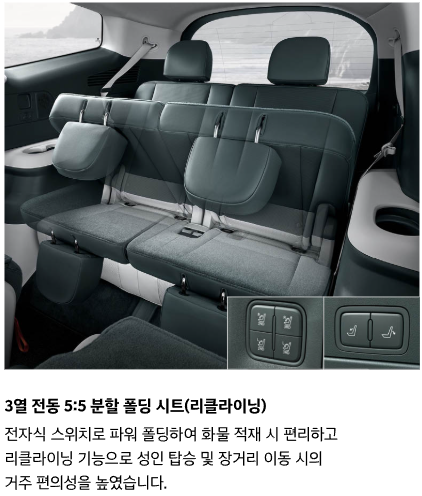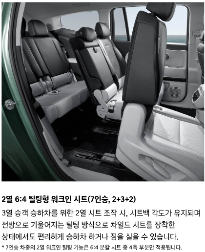 - 6인승 또는 7인승 옵션을 선택할 수 있습니다.