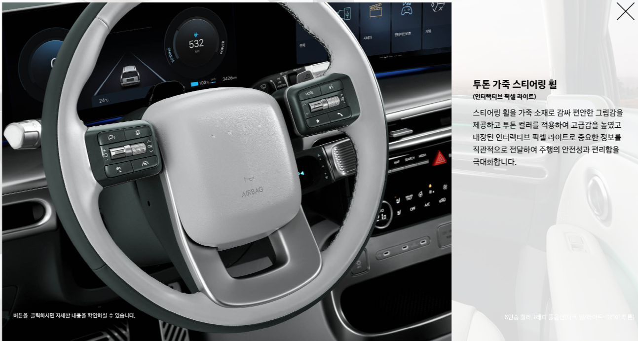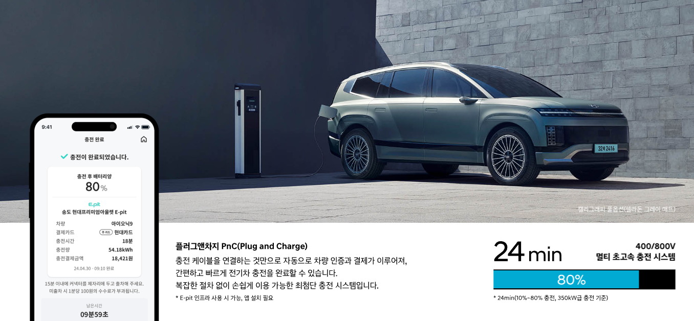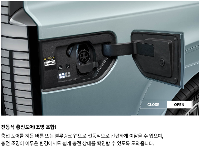- 편리한 충전 옵션: 초고속 충전 지원 및 V2L 기능.