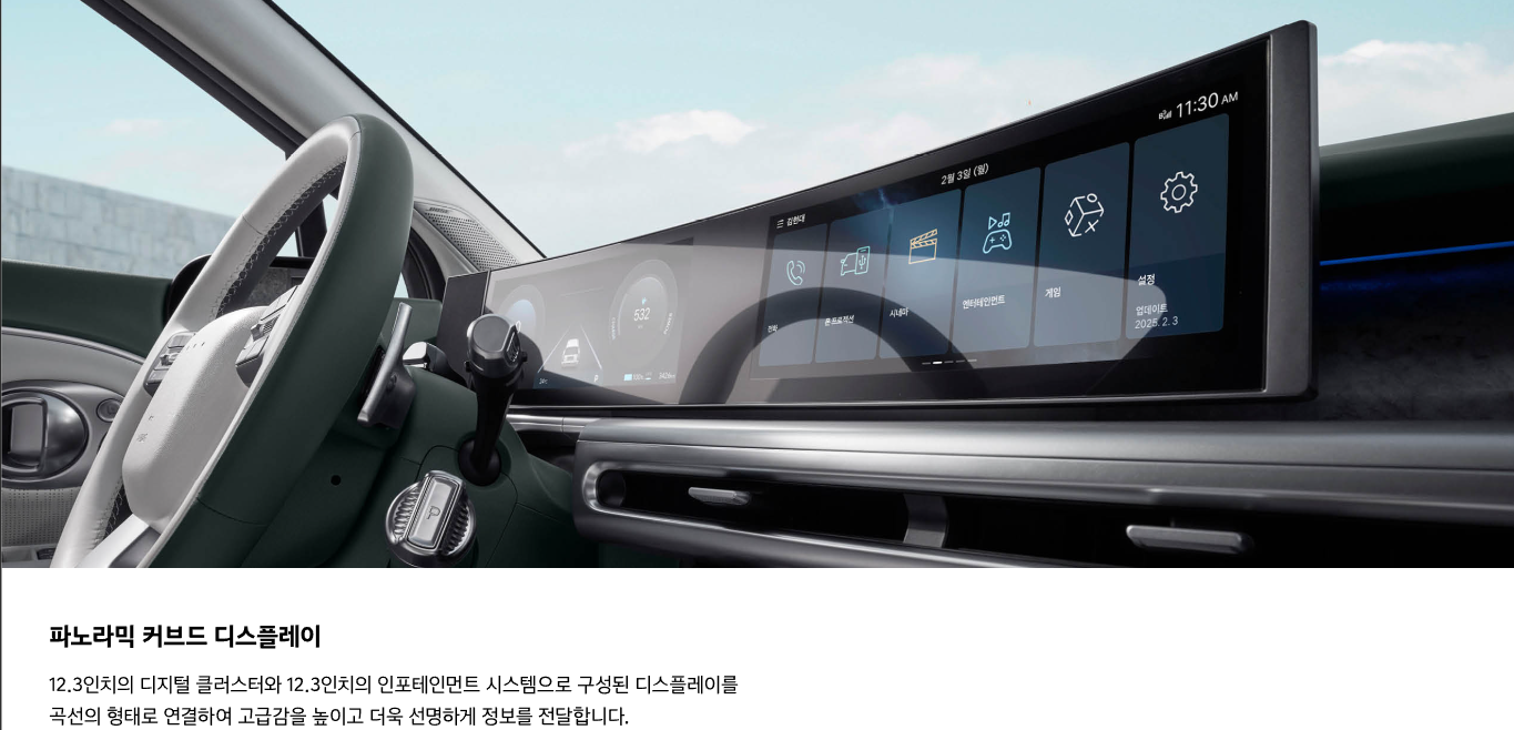 - 27인치 파노라믹 디스플레이: 계기판과 인포테인먼트 시스템 통합.
