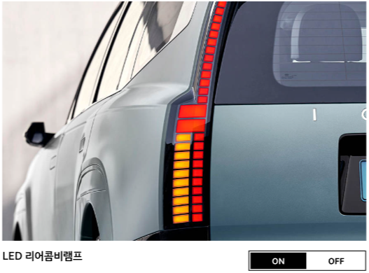 - 미래지향적 LED 라이트: 직선형 LED 주간주행등(DRL)과 후미등.