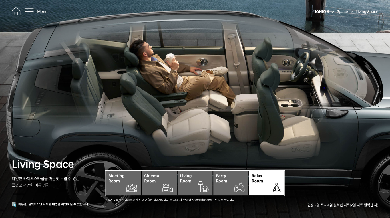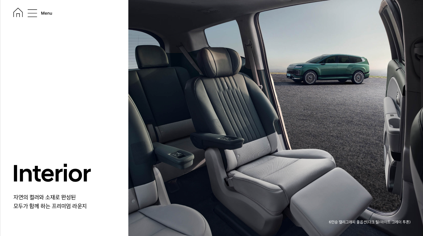 - 6인승 모델: 2열 독립형 캡틴 시트로 고급스러운 분위기와 편안함 제공.