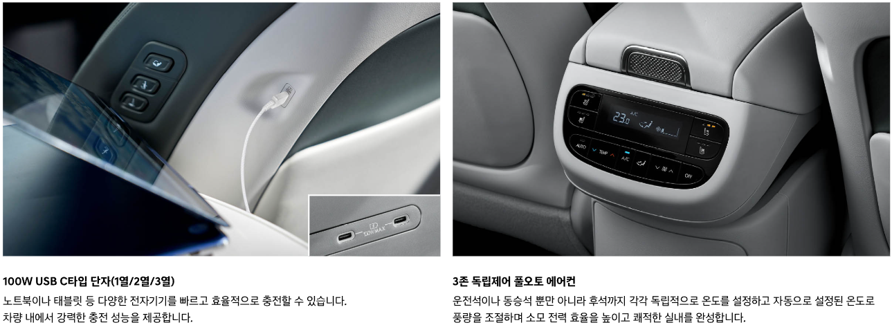 - 2열/3열 열선 및 통풍 시트: 모든 탑승자를 위한 쾌적한 환경.