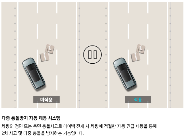 - 운전석, 조수석, 사이드 및 커튼 에어백 포함.