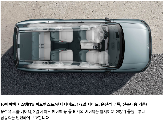 아이오닉9은 현대자동차의 최신 안전 기술을 적용해 운전자와 탑승자의 안전을 최우선으로 고려했습니다.