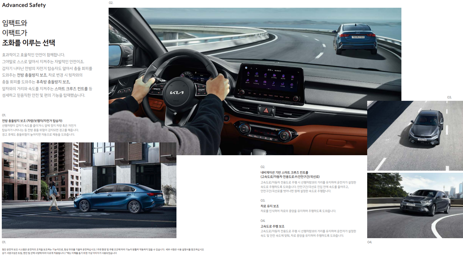 - 안전 옵션: 전방 충돌방지 보조, 차로 이탈방지 보조, 운전자 주의 경고 등