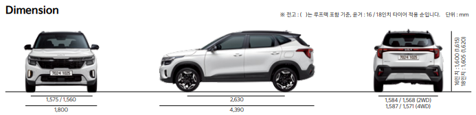 - 전고: 1,600mm (16인치 휠 기준, 루프랙 포함 시 1,615mm)