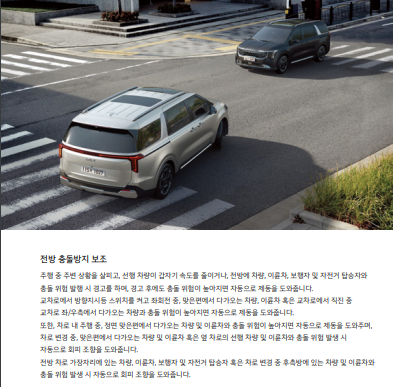 - 차로 유지 보조(LFA), 전방 충돌 방지 보조(FCA) 등 첨단 안전 사양.