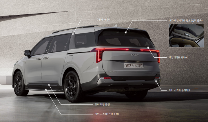 넓은 휠베이스와 전폭 덕분에 7~9인승 패밀리카로도 부족함이 없으며, 고속 안정성과 코너링 성능도 뛰어납니다.