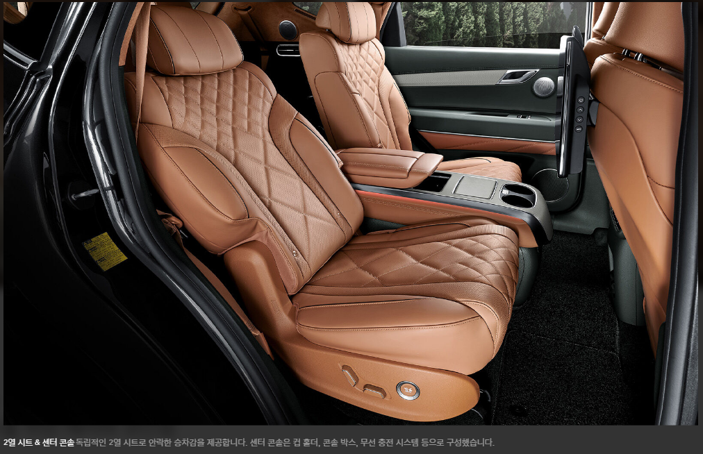 - 6인승 구성: 2열 독립 시트, 센터 콘솔 포함