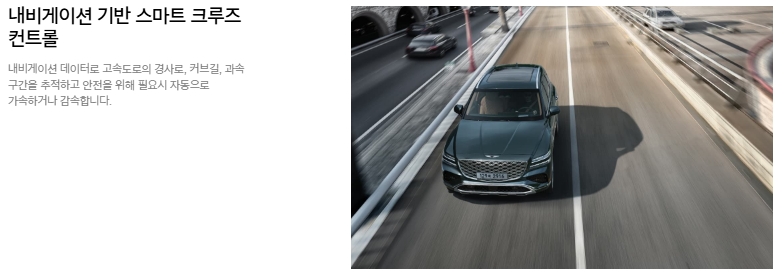 - 내비게이션 기반 스마트 크루즈 컨트롤: 편안한 장거리 주행 가능