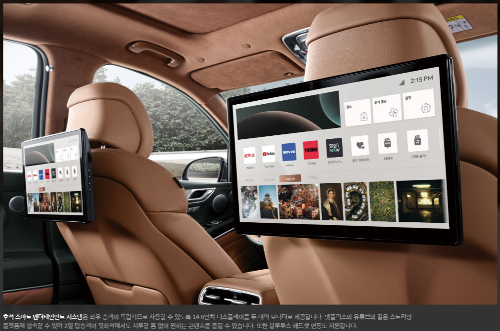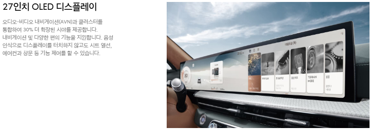 - 헤드업 디스플레이(HUD): 운전 중 주요 정보를 전면 유리에 표시