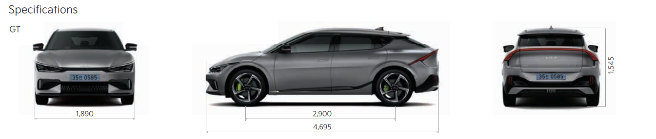 - EV6 GT 차체 크기: 전장 4,695mm, 전폭 1,890mm, 전고 1,545mm