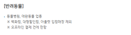 | 반려동물 | 적립 혜택 | 동물병원 등 |