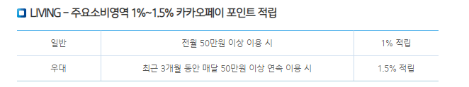 | 주요 소비 영역 | 1%~1.5% 적립 | 전월 50만원 이상 사용 시 |