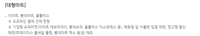 | 대형마트 | 적립 혜택 | 이마트 등 |
