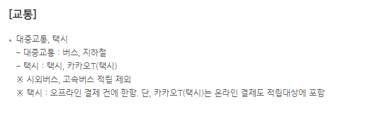 | 대중교통 및 택시 | 적립 혜택 | 버스, 지하철, 택시 |