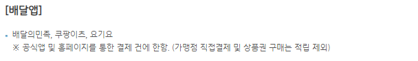 | 배달앱 | 적립 혜택 | 배달의민족 등 |