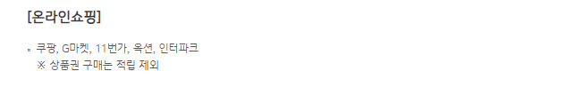 | 온라인 쇼핑 | 적립 혜택 | 쿠팡, G마켓 등 |