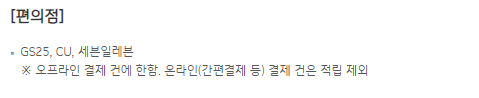 | 편의점 | 적립 혜택 | GS25 등 |