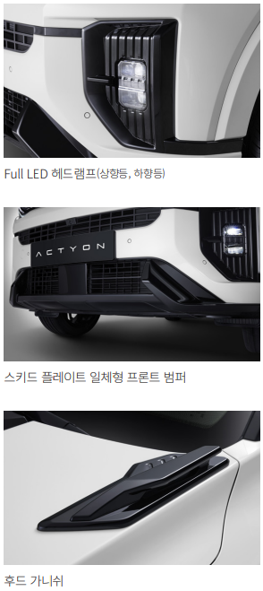 | 엑티언 | - 강력한 엔진 성능 - 다양한 첨단 옵션 - 신선한 디자인 |