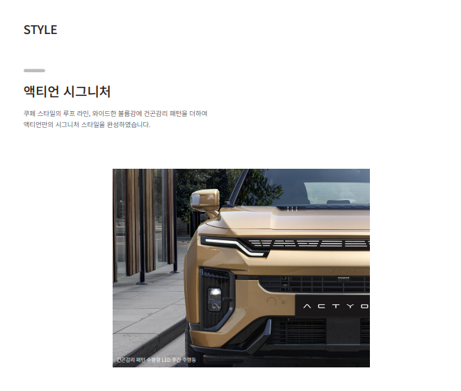 "엑티언과 함께 당신의 드라이빙 라이프를 업그레이드하세요! 지금 바로 시승 신청하고, 특별한 구매 혜택도 놓치지 마세요. 새로운 SUV의 기준, 엑티언이 여러분을 기다립니다!"